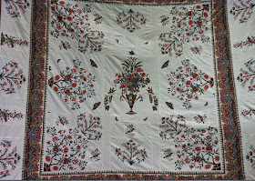 My Friend Susan made this John Hewson Winterthur quilt top and what a wonderful job she did! Using her impressive mathematical skills and her Determination to Piece the top with no Fusing, she accomplished her Goal! It was not easy and was frustrating at times and some fabric was wasted, but she persevered! She got the fabric in Nov and showed me the top Dec 12 at one of our quilt study meetings! Her speed is also impressive in addition to her workmanship!